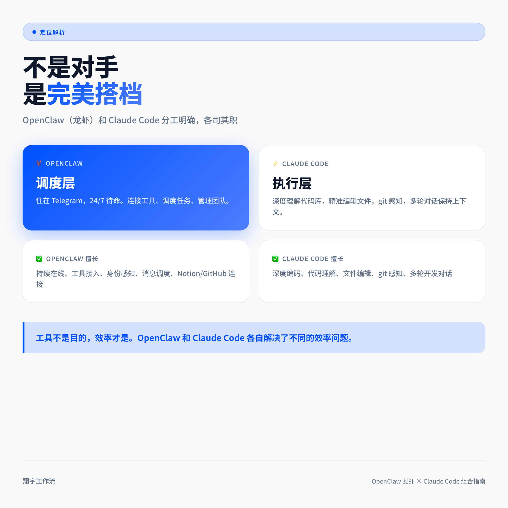 工具不是目的,效率才是。OpenClaw 和 Claude Code 各自解决了不同的效率问题。
