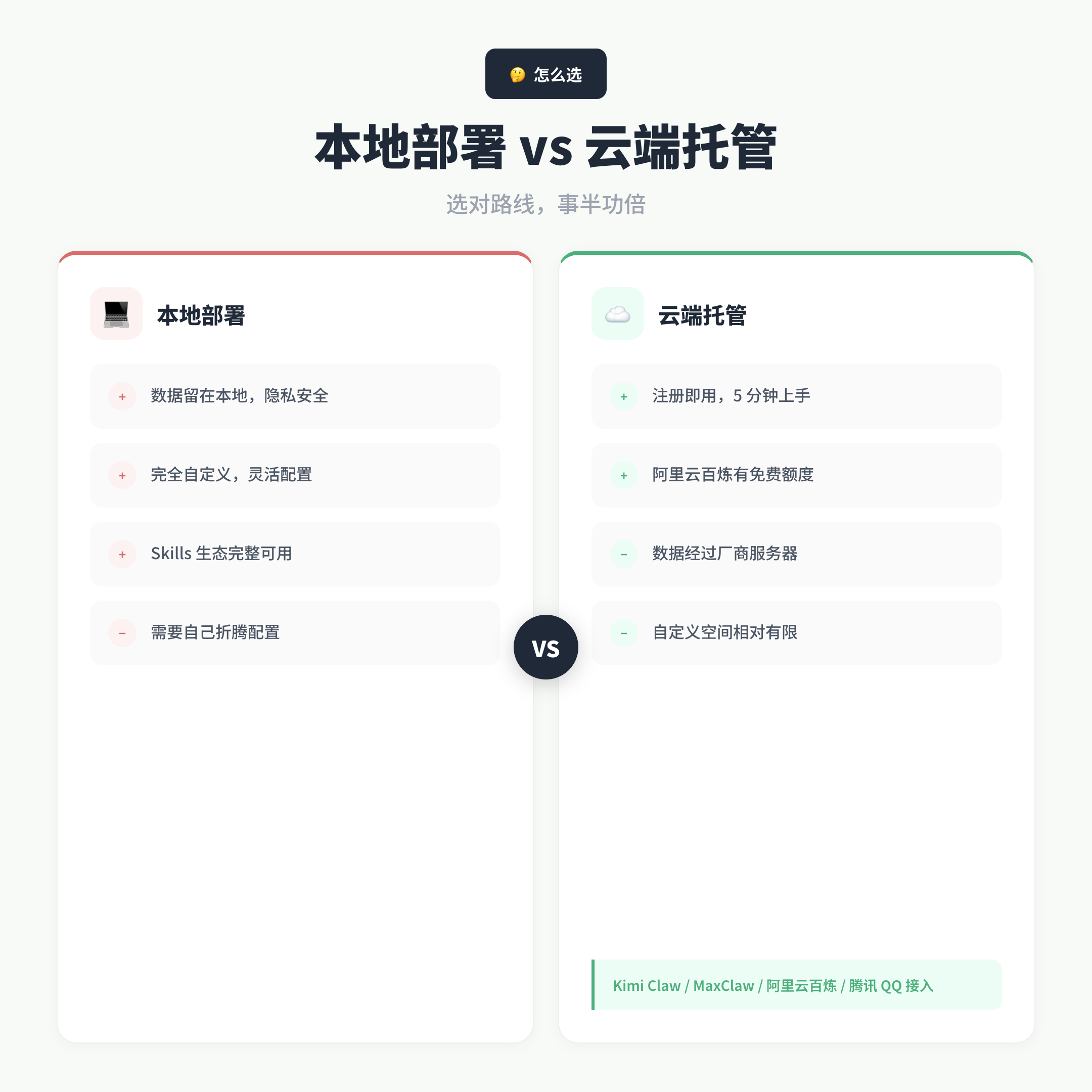 - 用 Kimi Claw、MaxClaw 这类大厂托管版,安全审核相对可控